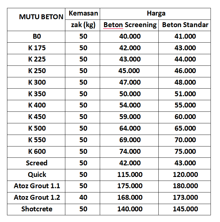 - Harga tersebut diatas truk frangko Jakarta, Bekasi, Depok dan Surabaya-Sidoarjo